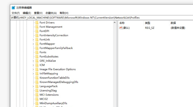 Windows Registry Editor Version 5.00[-HKEY_LOCAL_MACHINE\SOFTWARE\Microsoft\Windows NT\CurrentVersion\NetworkList\Profiles]